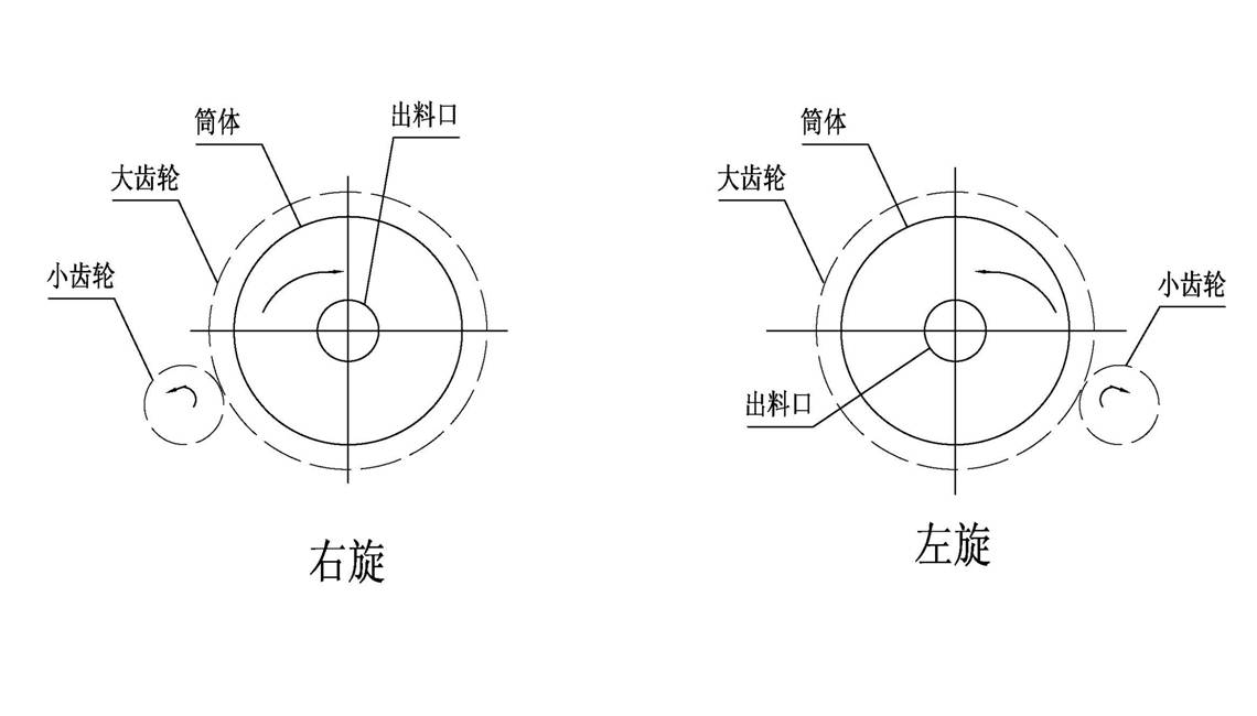 有許多客戶經(jīng)常會問,怎么才能正確的判斷球磨機運轉(zhuǎn)時是左旋還是右旋,今天河南豫暉礦山機械有限公司技術(shù)人員以圖為為例為大家解這個因惑:要想判斷球磨機是左旋還是右旋,要從球磨機出料口(靠近大齒輪一端)向進(jìn)料口方向看,筒體逆時針旋轉(zhuǎn)為左旋,筒體順時針旋轉(zhuǎn)為右旋;在布置圖上,左旋布置時,傳動部分(過橋)在筒體右側(cè);右旋布置時,傳動部分(過橋)在筒體左側(cè)。如下圖所示: